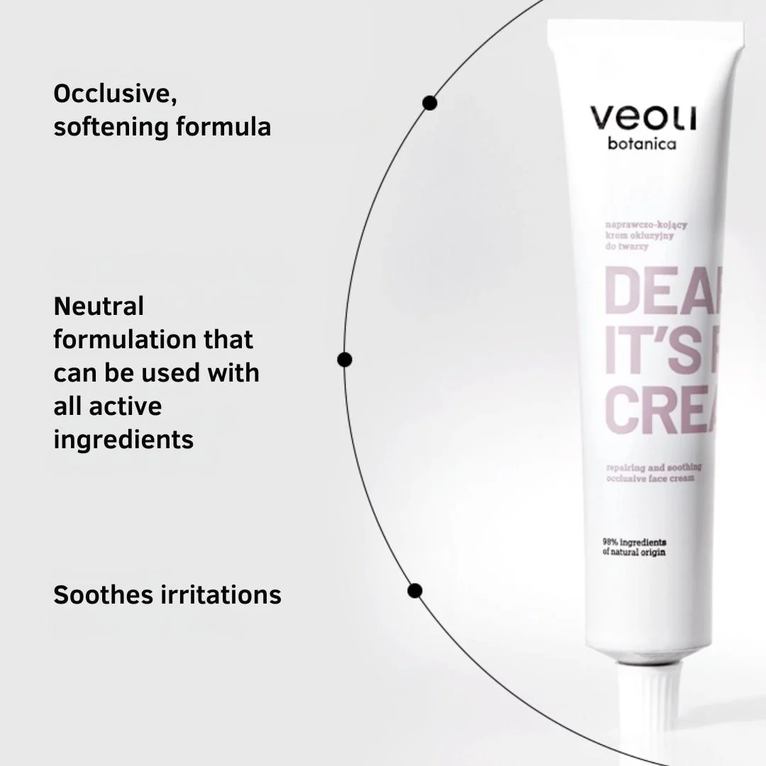 Repairing and soothing face occlusion cream DEAR SKIN, IT'S RICH CREAM with a rich texture - regenerates the hydrolipidic barrier, soothes irritation and provides a feeling of comfort, eliminating dryness and roughness.